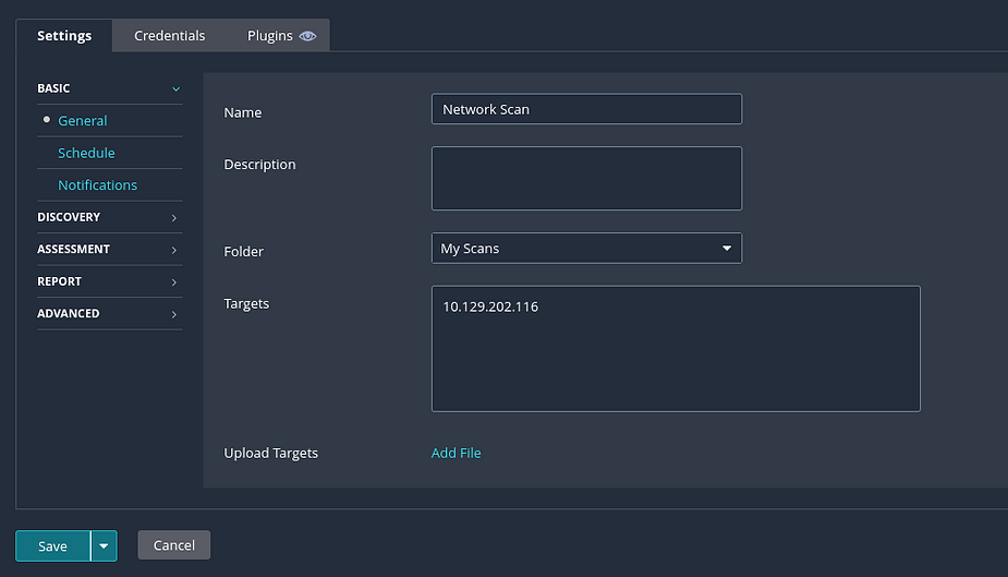 Let’s do a “Basic Network Scan”. Enter your target IP and other details.